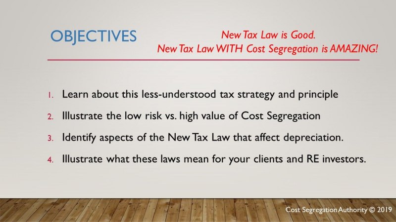 Jared Jex will discuss changes to the Tax Cuts & Jobs Act with a focus on cost recovery changes, Qualified Improvement Property (QIP), and Qualified Opportunity Zones (QOZ) and the tax incentive impact they will have on real estate owners. Additionally Jared will touch on Cost recovery and the principles of depreciation and cost segregation, tax implications and strategies upon the sale of a real estate asset, and bonus depreciation.